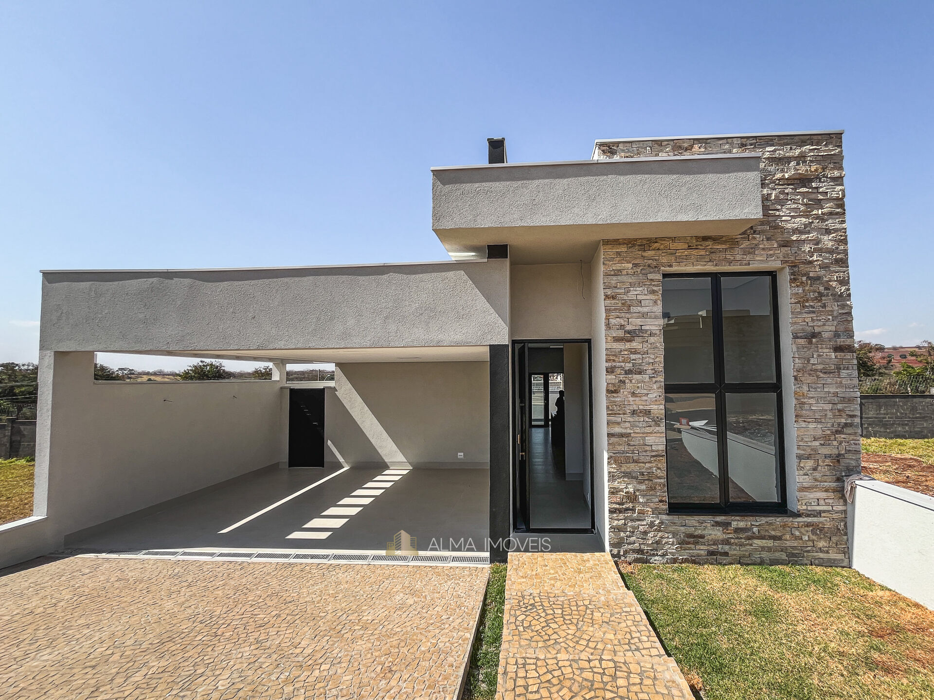 • Fachada imponente com revestimento de pedra