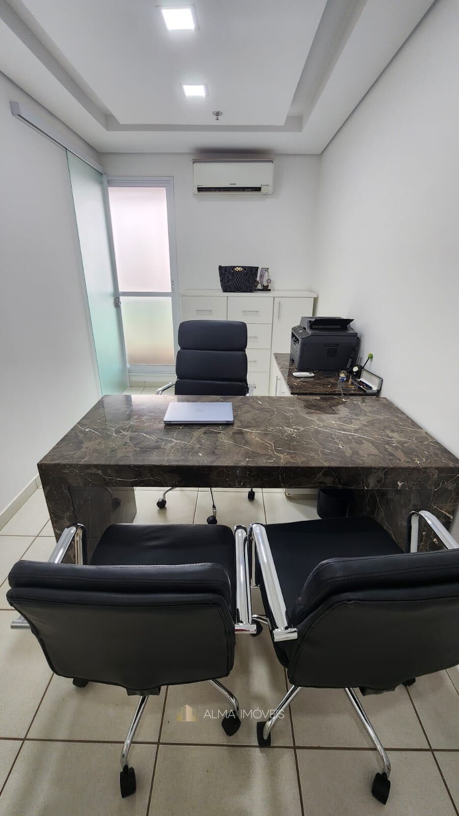 - Sala 02 com mesa de mármore imperial, cadeira giratória de diretor e 2 cadeiras secretárias
